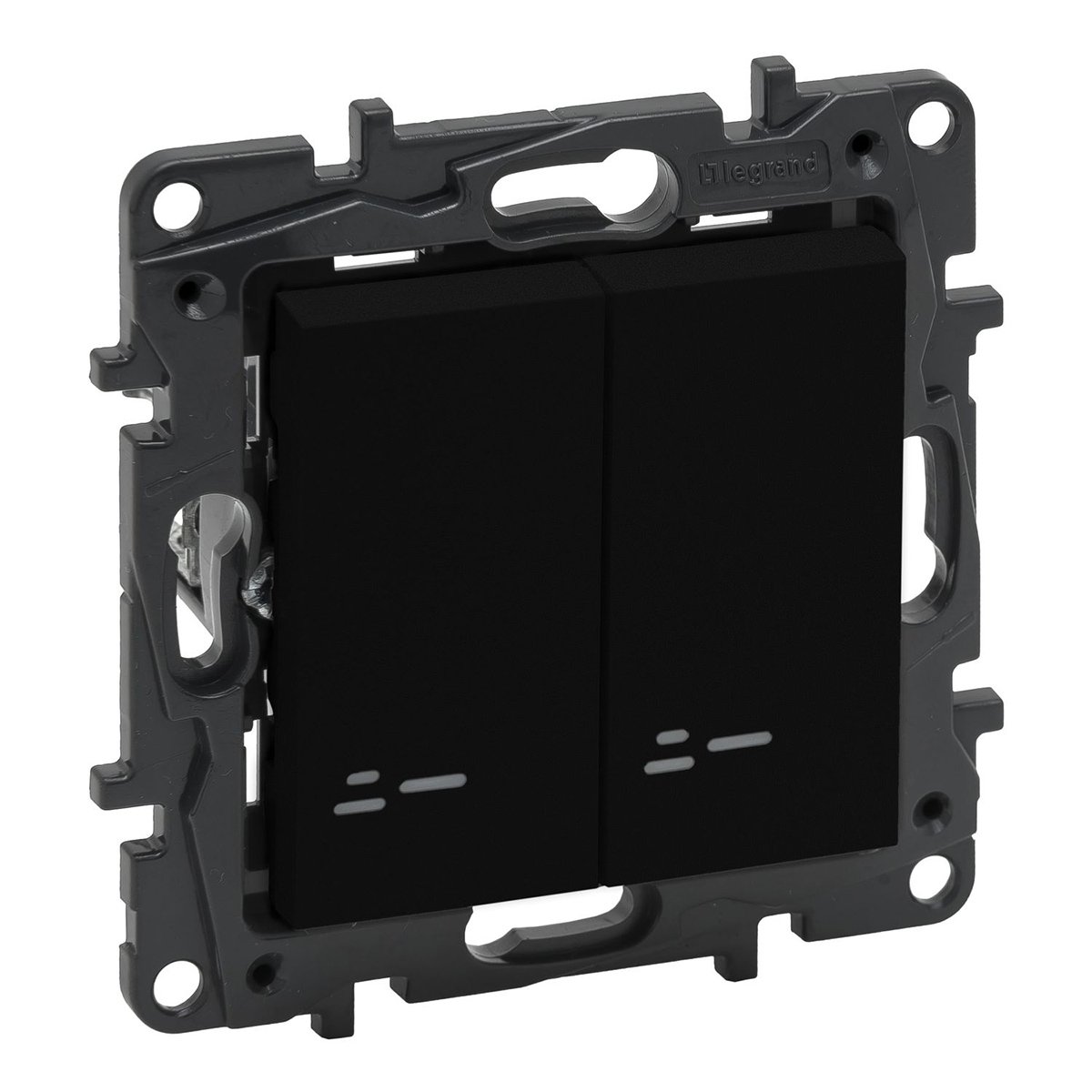 Переключатель 2-кл с подсветкой 10А, автоматические клеммы, Legrand Niloe Step 863518, черный