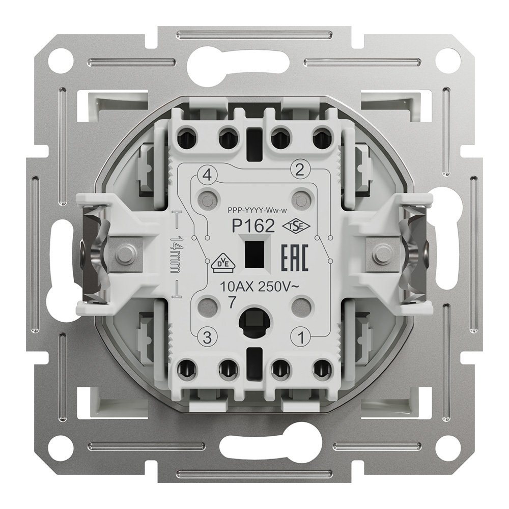 – Комплектация: механизм + клавиша. Без рамки.– Тип: переключатель промежуточный, схема - крест.