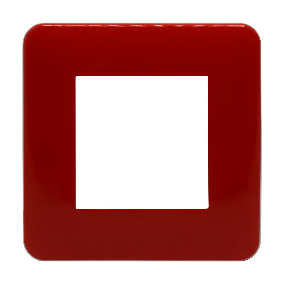 Рамка в красном цвете из коллекции «Latina» выполнена из пластика и может устанавливается в горизонтальном и вертикальном положении.