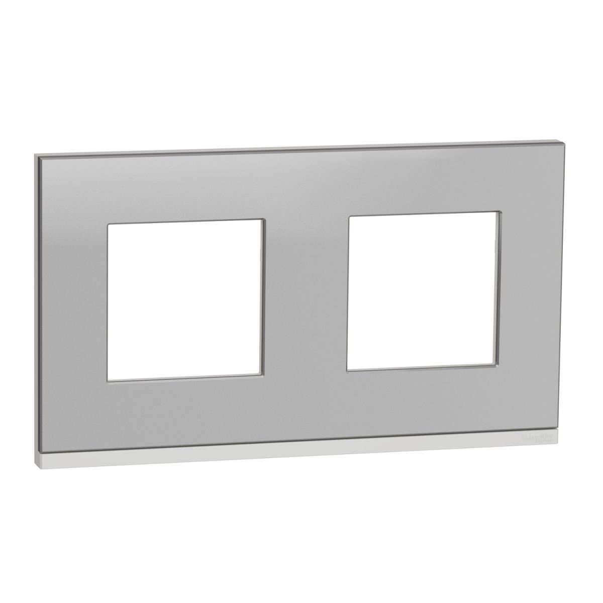 Рамка 2-поста Schneider Electric Unica New Pure NU600480, горизонтальная, алюминий матовый/белый