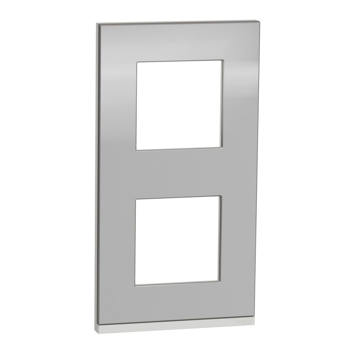 Рамка 2-постовая Schneider Electric Unica New Pure NU6004V80, вертикальная, алюминий матовый/белый