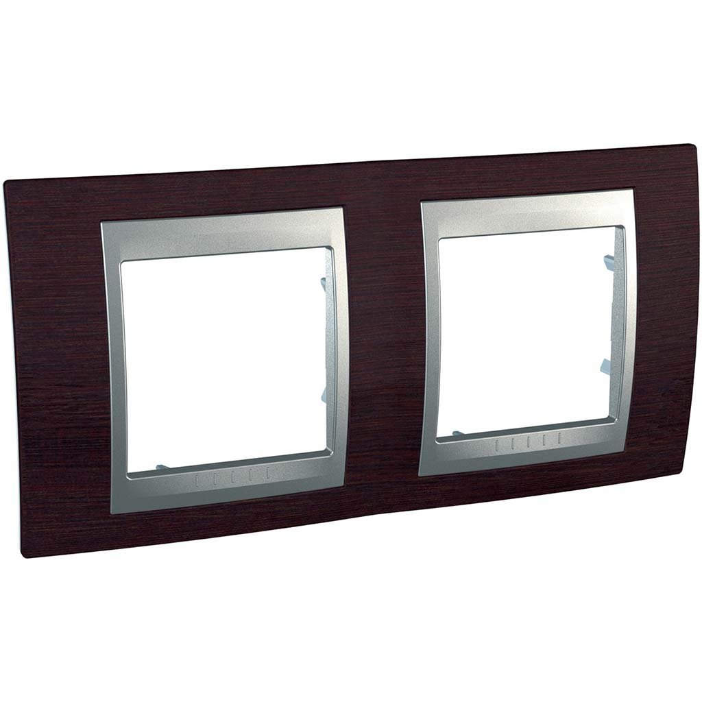 Рамка 2-я Unica Top деревянная, горизонтальная цвет венге/алюминий Schneider Electric MGU66.004.0M3