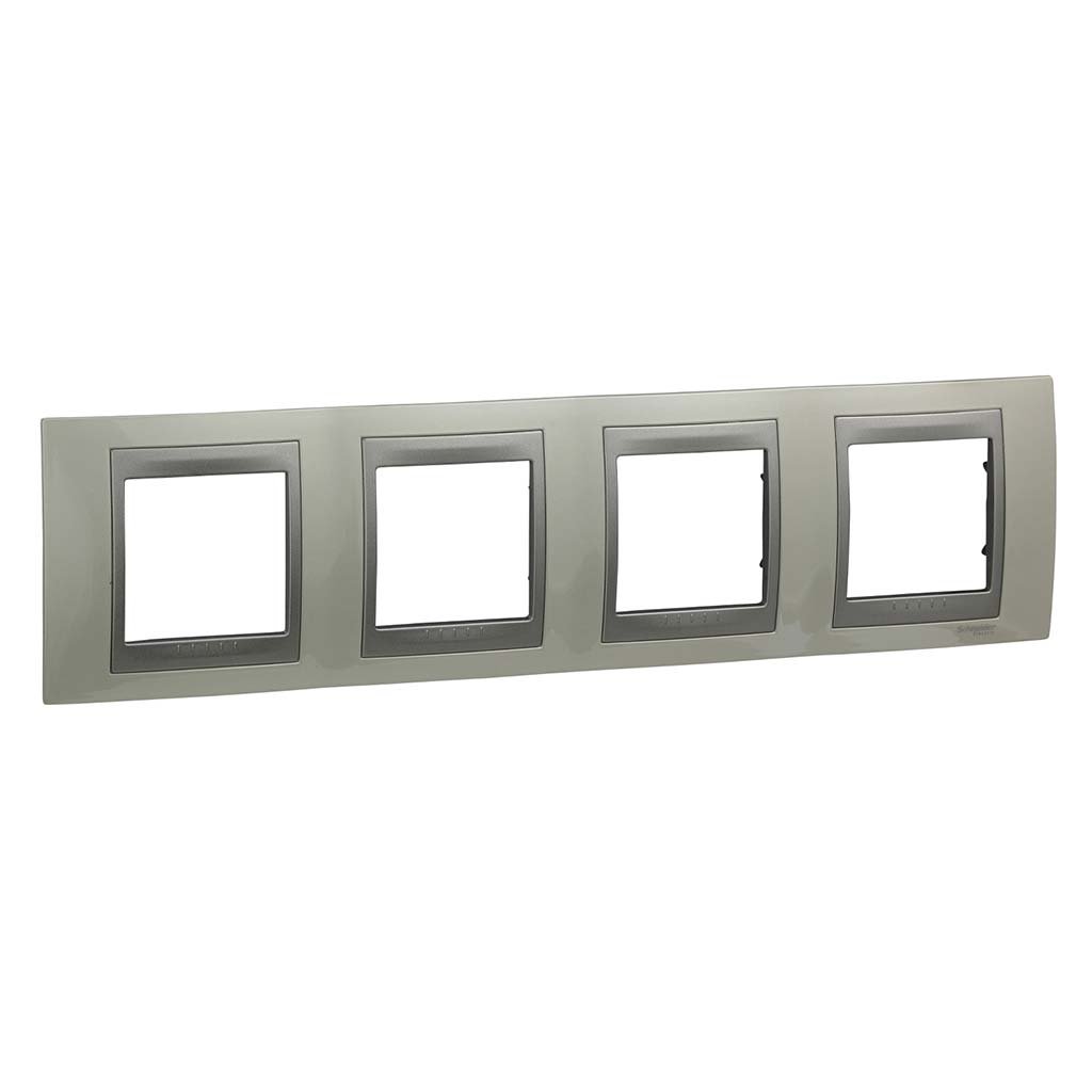 Установочная рамка из натурального металла, на 4 места для механизмов Uncia — Schneider Electirc.Технические характеристики:
