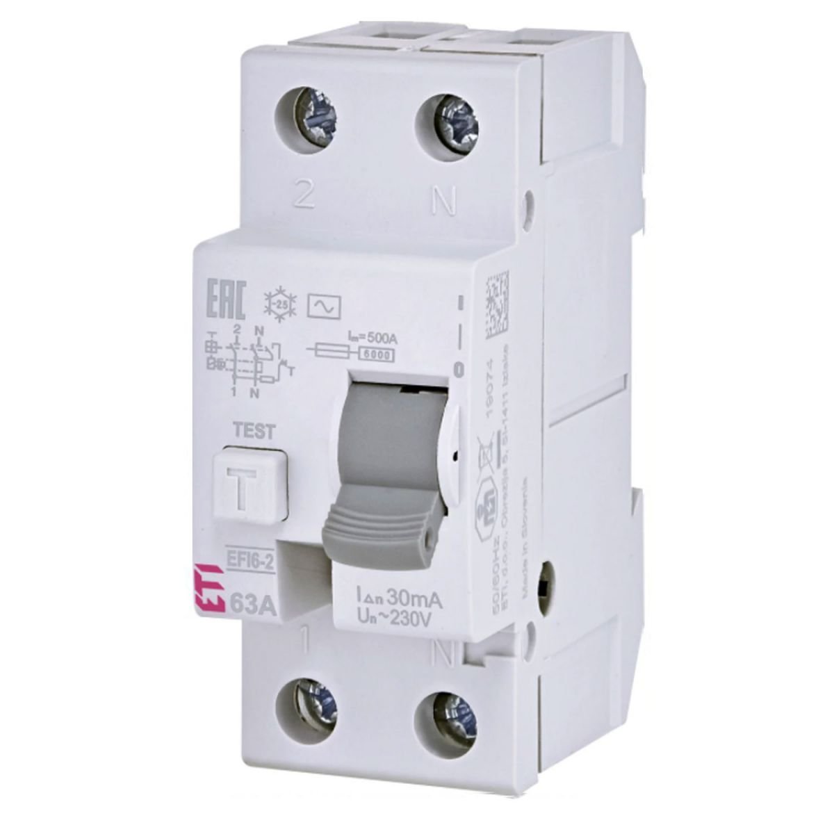 Дифференциальное реле (УЗО) 2р EFI6-P2 63/0,03 тип AC (6kA), ETI 2061253