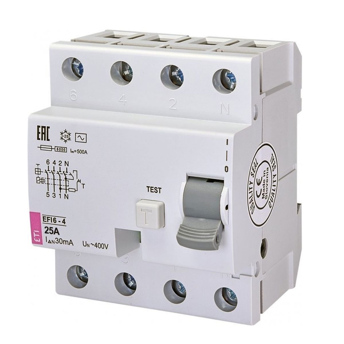 Серия ETI EFI6-P4 имеет понятную четкую маркировку изделия, что информирует о всех основных характеристиках устройства.
