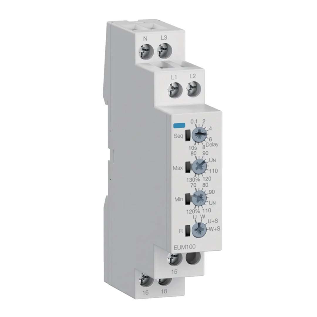 Реле контроля фаз и напряжения без задержки на включение 1P+N/3P(N) 1ПК, Hager EUM100