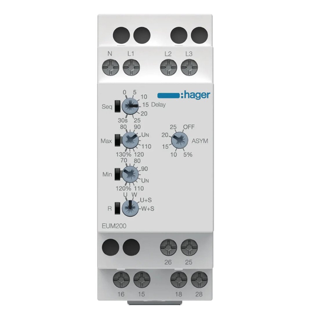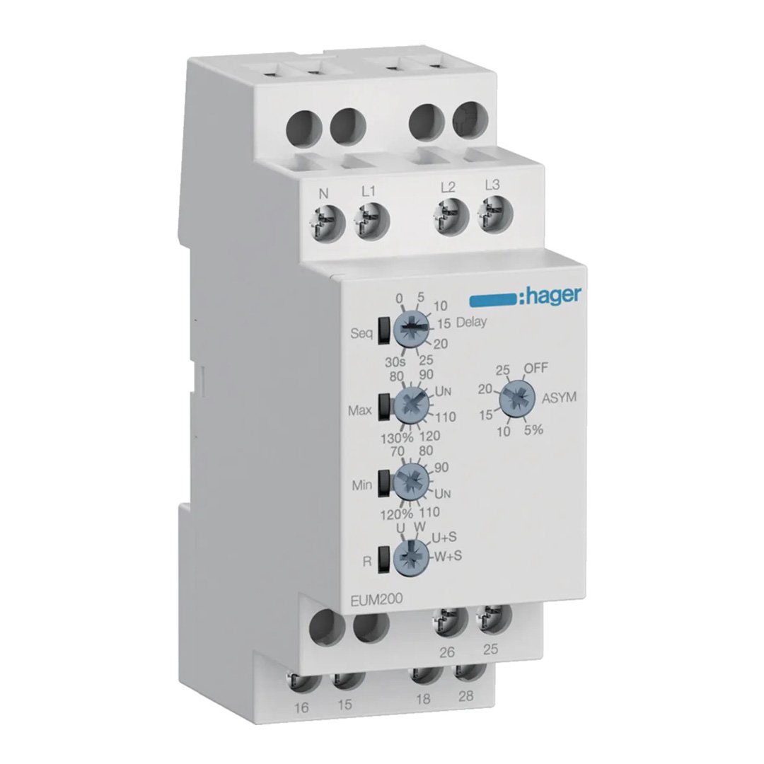 Реле контроля фаз и напряжения без задержки на включение 1P+N/3P(N) 2ПК, Hager EUM200