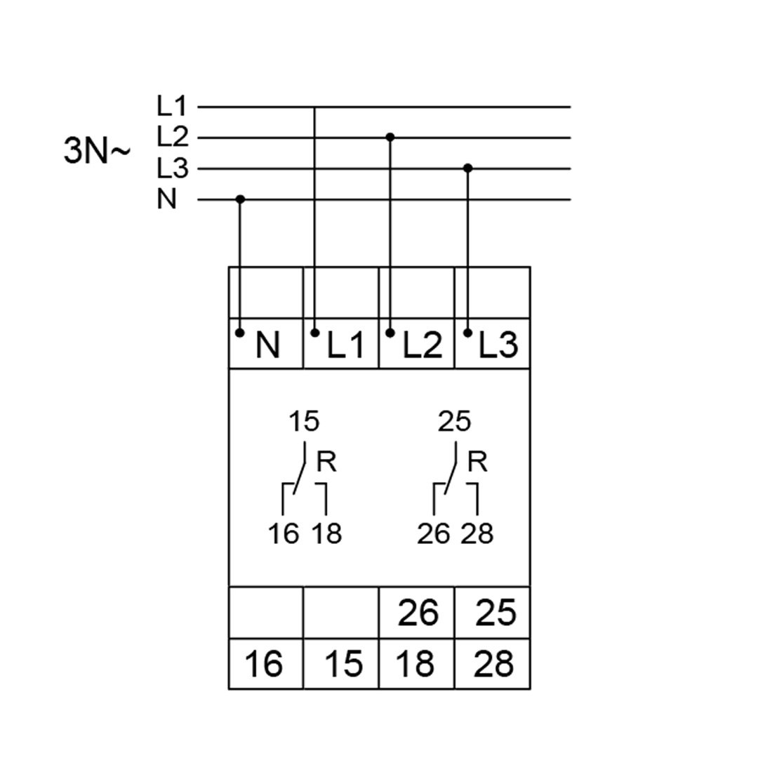 - Основные функции реле: Контроль напряжения, Контроль обрыва фаз, Контроль последовательности фаз