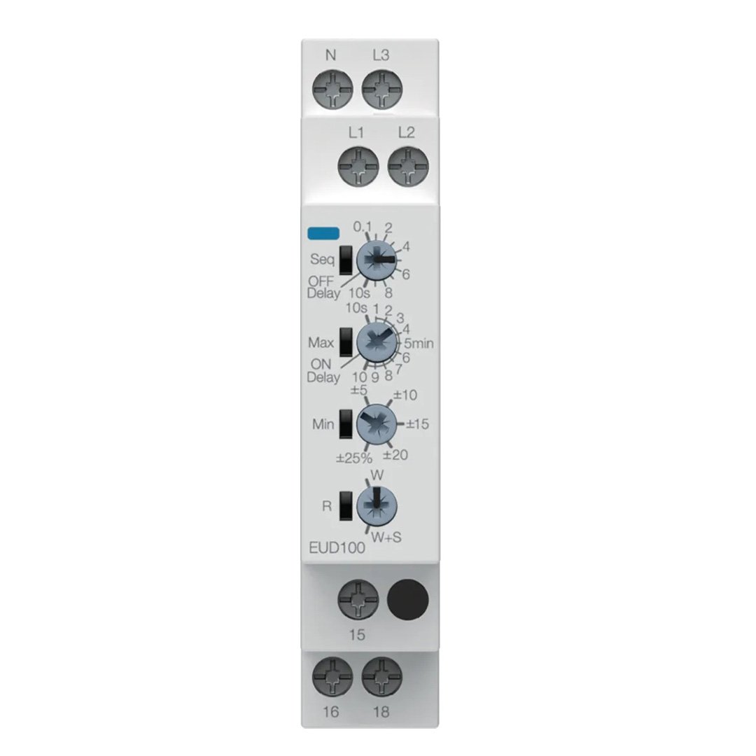 — Задержка запуска, задержка включения, задержка отключения, контроль фазы, обрыв, чередование и последовательность фаз.