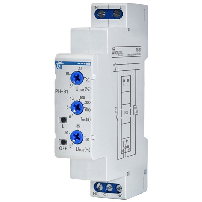 Реле напряжения 1-ф. 0-600 сек. 95-450V 1ПК 16A/230V PH-31 Novatek (Новатек) NTRN31000