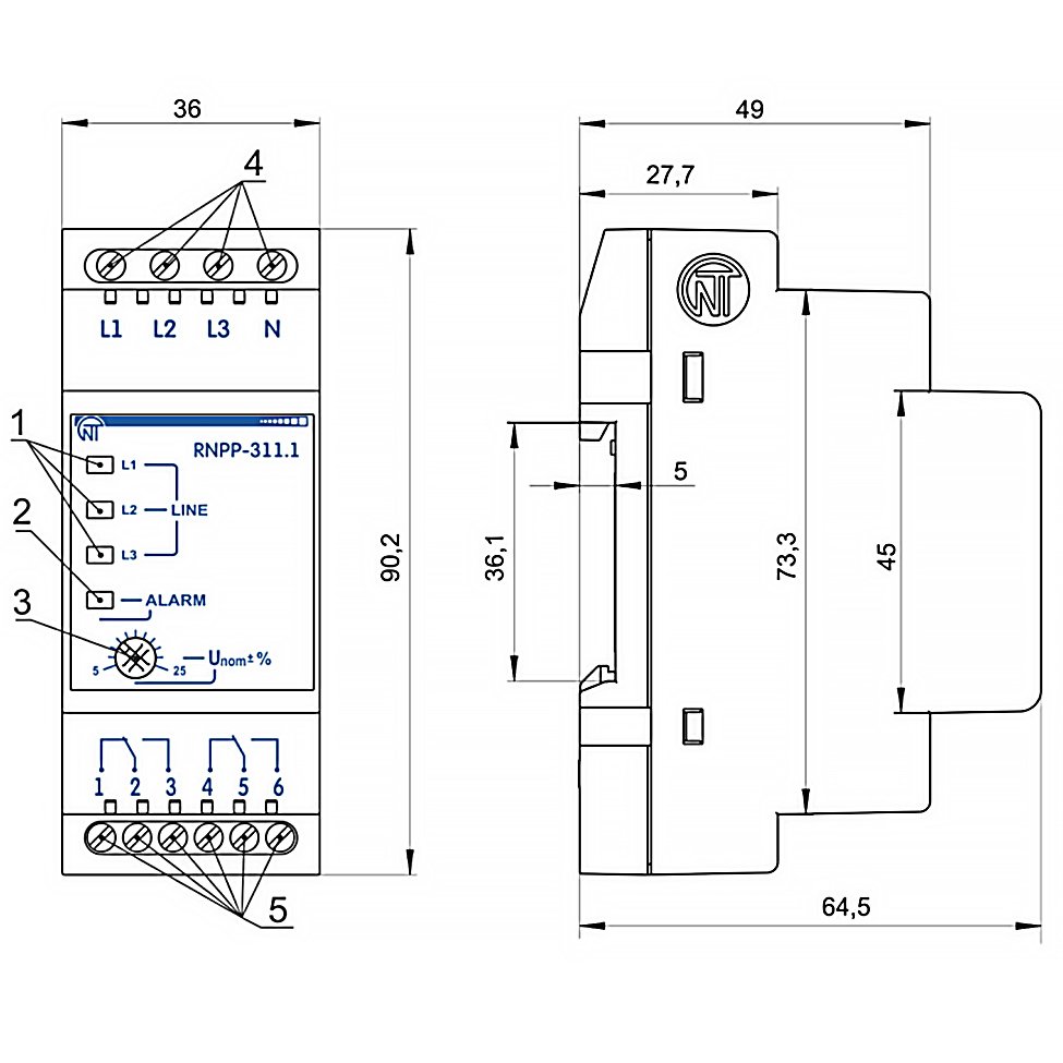 Реле напряжения, перекоса и последовательности фаз РНПП-311.1 Novatek (Новатек) NTRNP3111