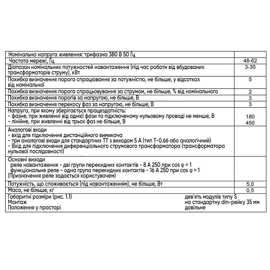 - Основные функции реле: Релейная (переключение), Контроль напряжения, Задержка срабатывания, Контроль обрыва фаз, Ограничение мощности, Измерение мощности