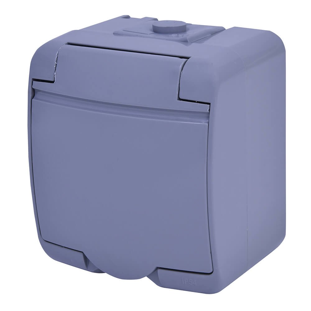 Розетка 1-а с з/к Schuko RHE-1s-SR (серая/серая крышка, IP54) ETI Hermetics 4668070