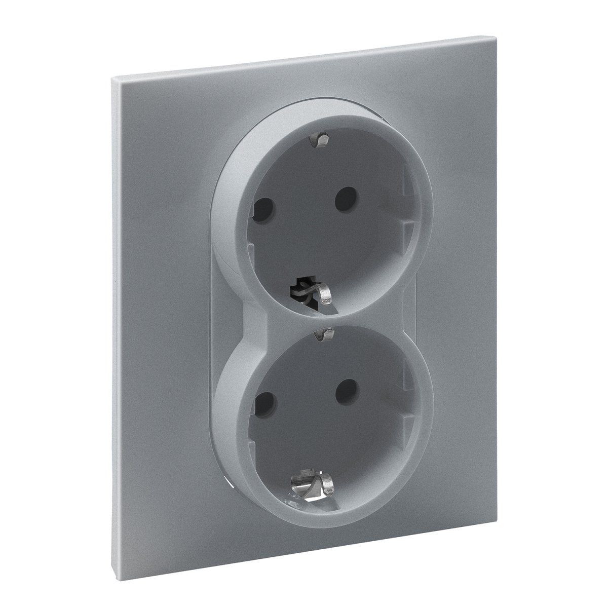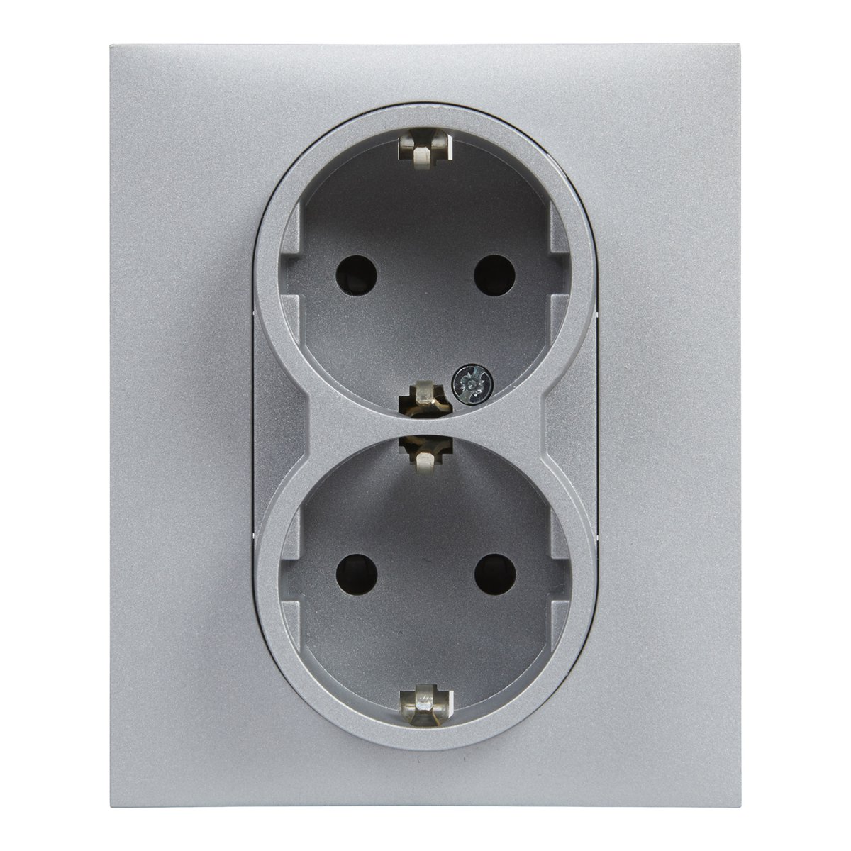 Розетка 2-я. с з/к и шторками (пружин.клеммы) 16А/250V Legrand Suno 721326 алюминий
