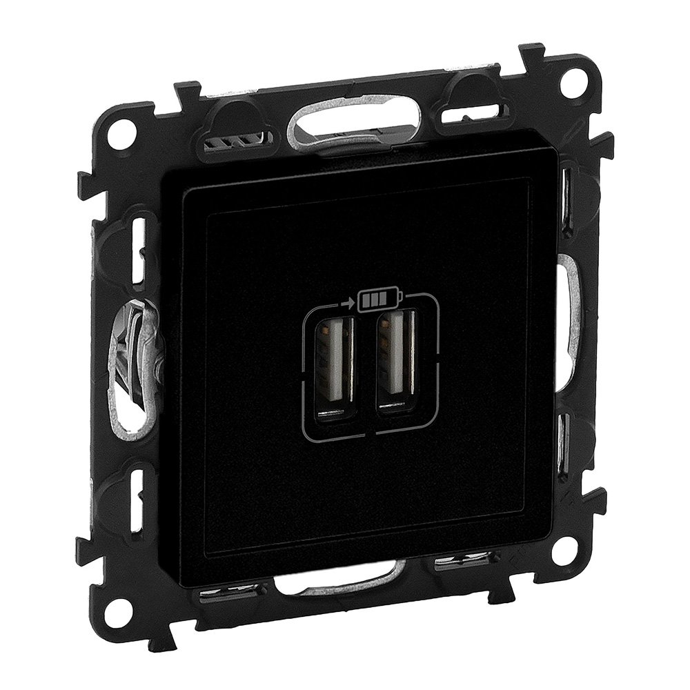 Розетка 2-я USB для зарядки Valena Life Black 756312, чёрный матовый