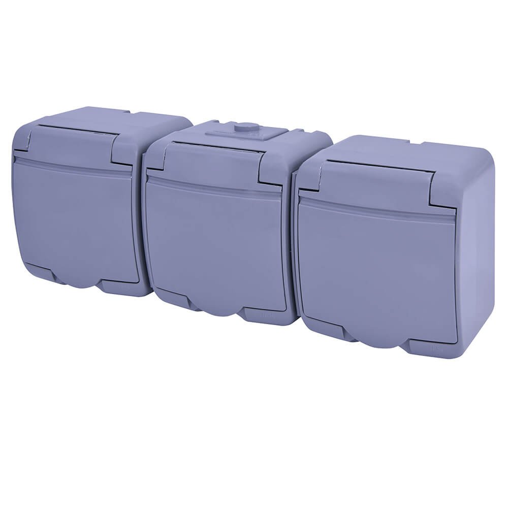 Розетка 3-я с з/к Schuko RHE-3s-SR (серая/серая крышка, IP54) ETI Hermetics 4668074