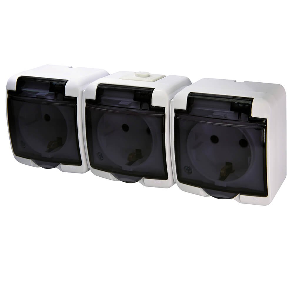 Розетка электрическая (тройная) с заземляющим контактом Schuko RHE-3sd ETI (код 4668024) – это электроустановочное изделие из серии Hermetics производства ETI (Словения).