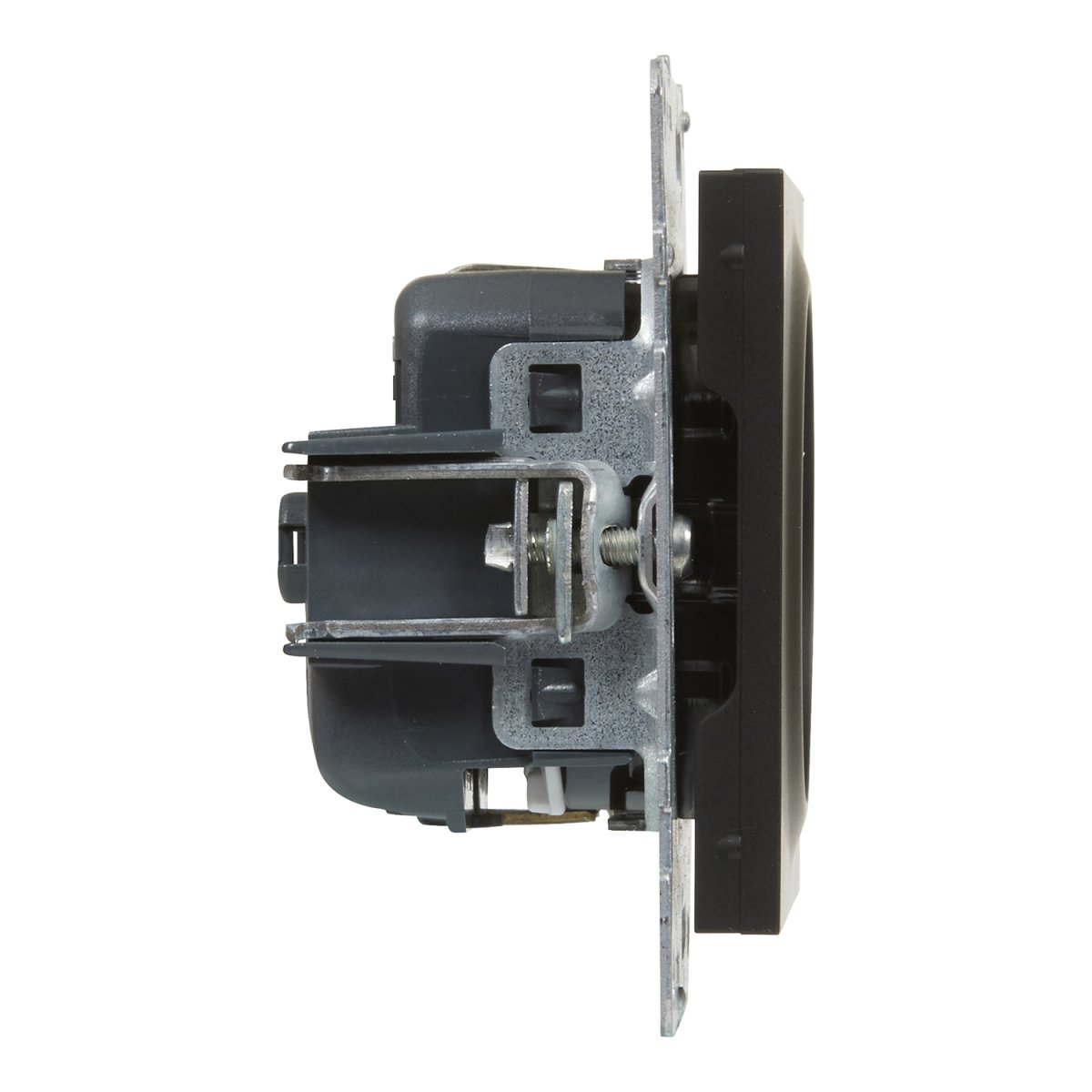 Розетка с з/к и шторками (пружин.клеммы) 16А/250V Legrand Suno 721420 черный