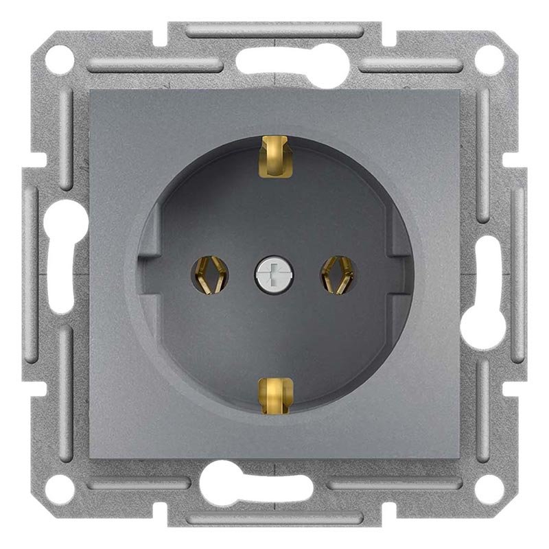 Розетка с заземлением «Asfora», (цвет сталь) Schneider Electric EPH2900162