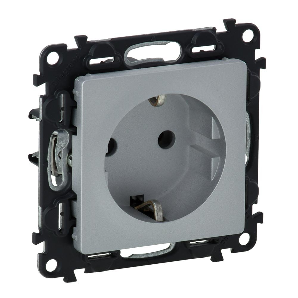 Розетка с заземлением, Legrand Valena Life 753625, винтовые клеммы, алюминий