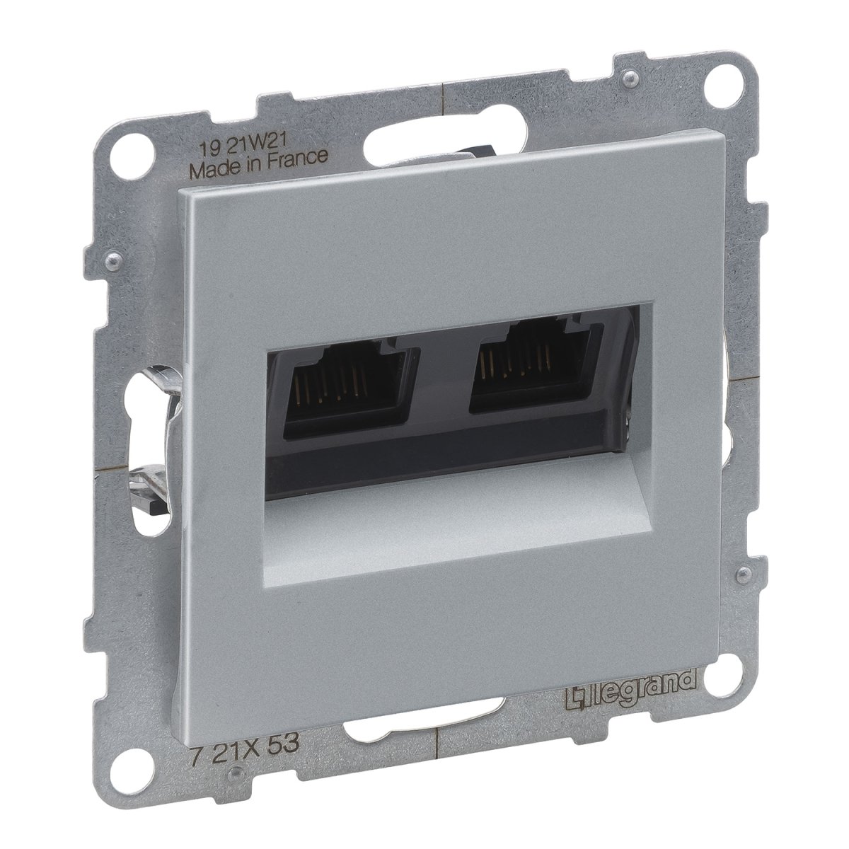 Розетка компьютерная 2-я RJ45 CAT6/UTP Legrand Suno 721353 алюминий