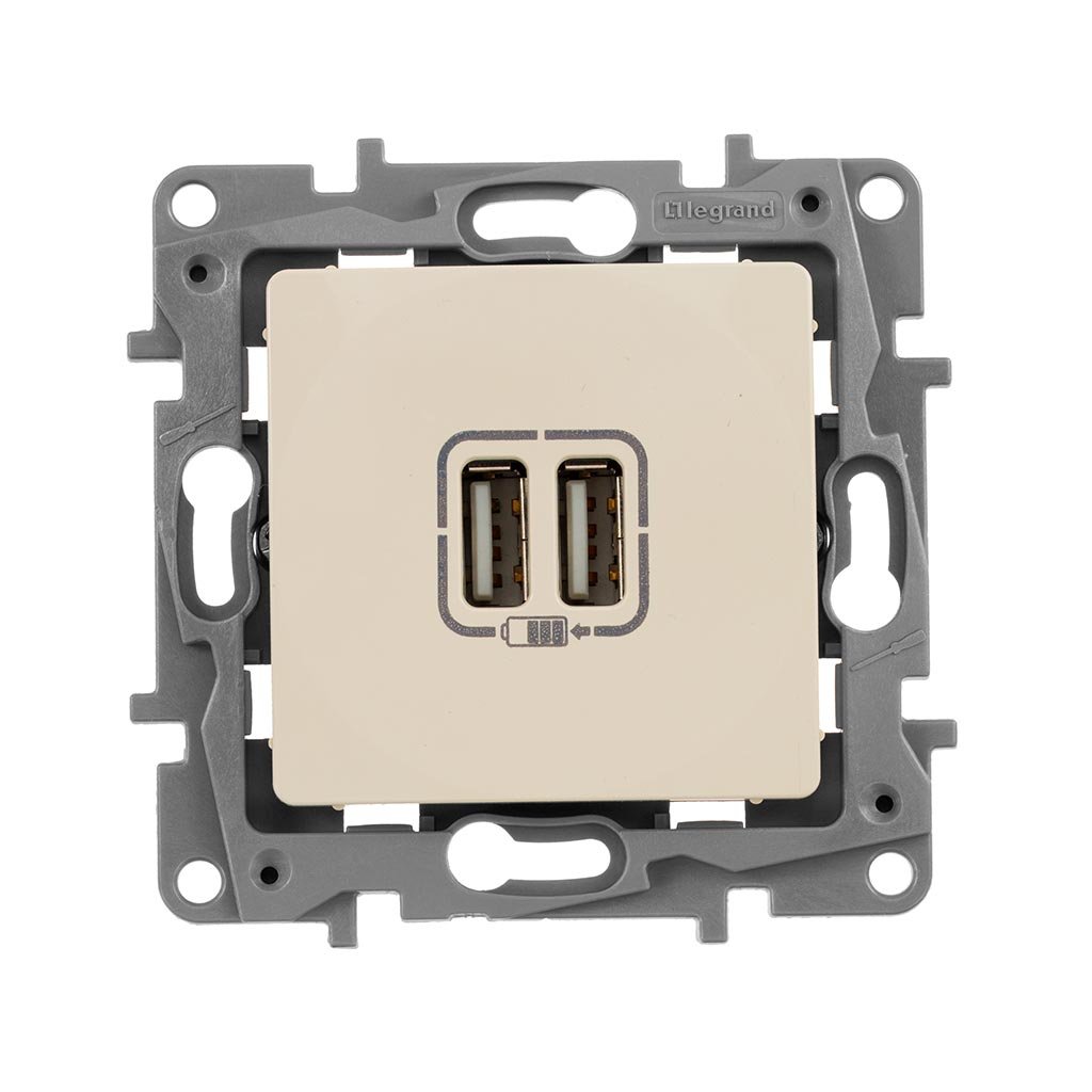 Розетка двойная USB, 240/5В, 2400МА, Legrand Etika 672394 «слоновая кость»