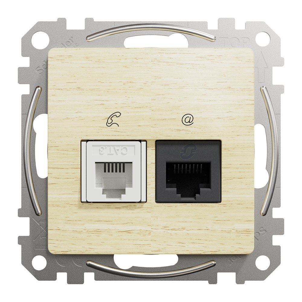 Розетка телекоммуникационная RJ45+RJ11 6UTP Schneider Electric Sedna Elements, Артикул - SDD180468 (цвет - берёза)