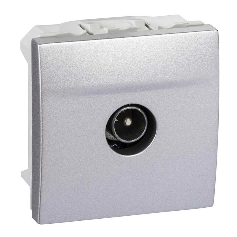 Розетка телевизионная проходная штырьковый разъем ТV 2-м. Unica алюминий Schneider Electric MGU3.463.30