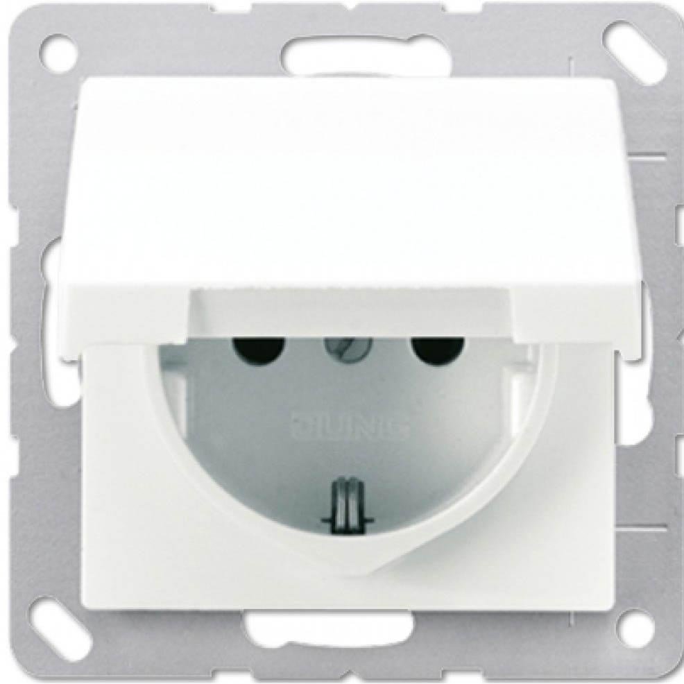 Розетка с з/к с крышкой IP44 Jung ABAS520KLWW белый