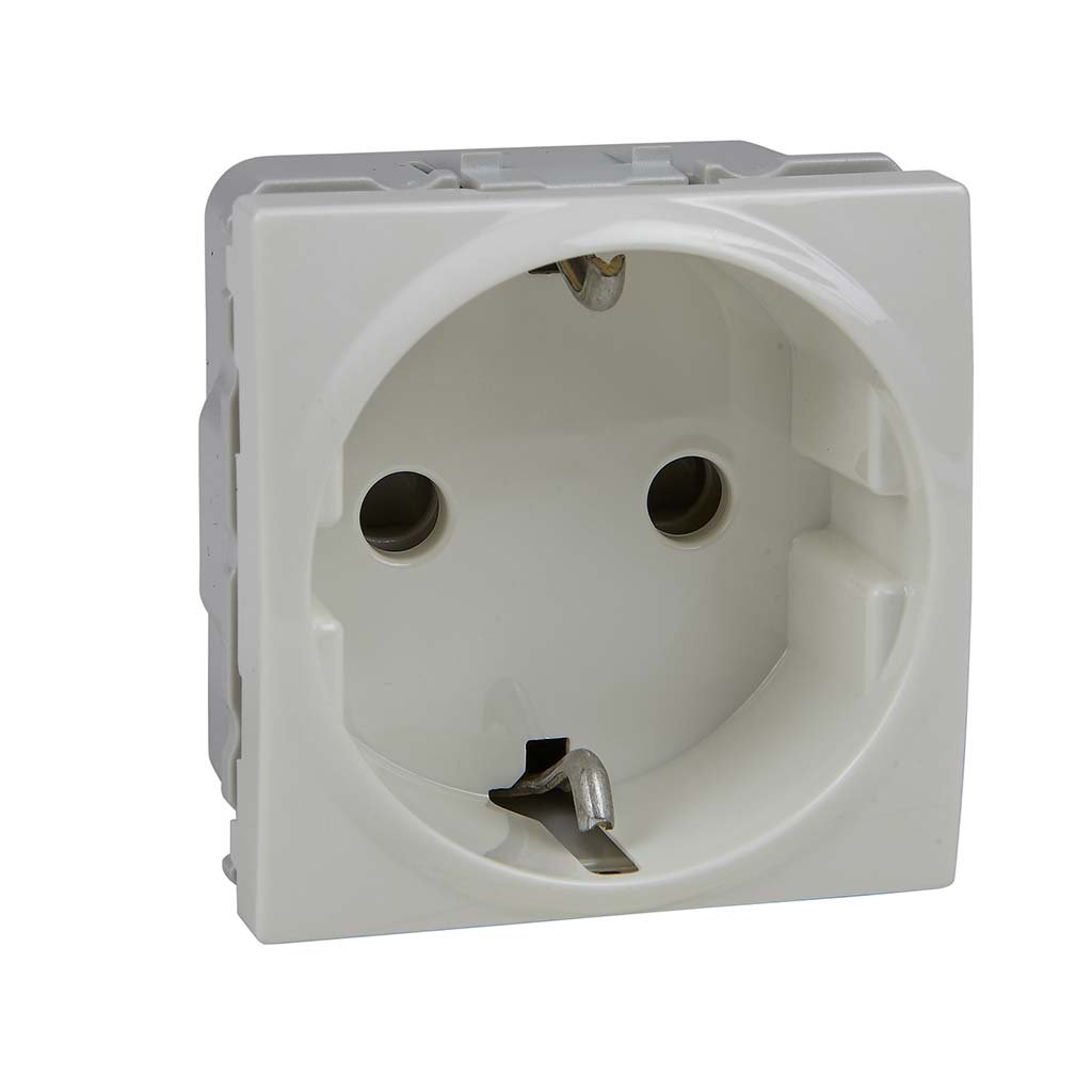 – Электрическая розетка с заземляющим контактом и защитой. Контакты розетки защищены специальными шторками - «защита от детей».– 2 модуля.