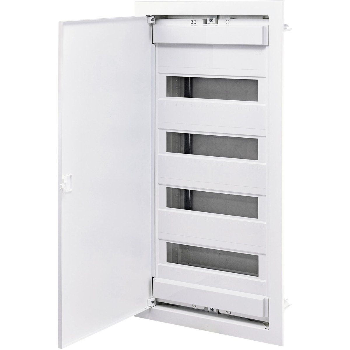 Распределительный щит ECG56 ETI поставляется с белой металлической дверцей.
