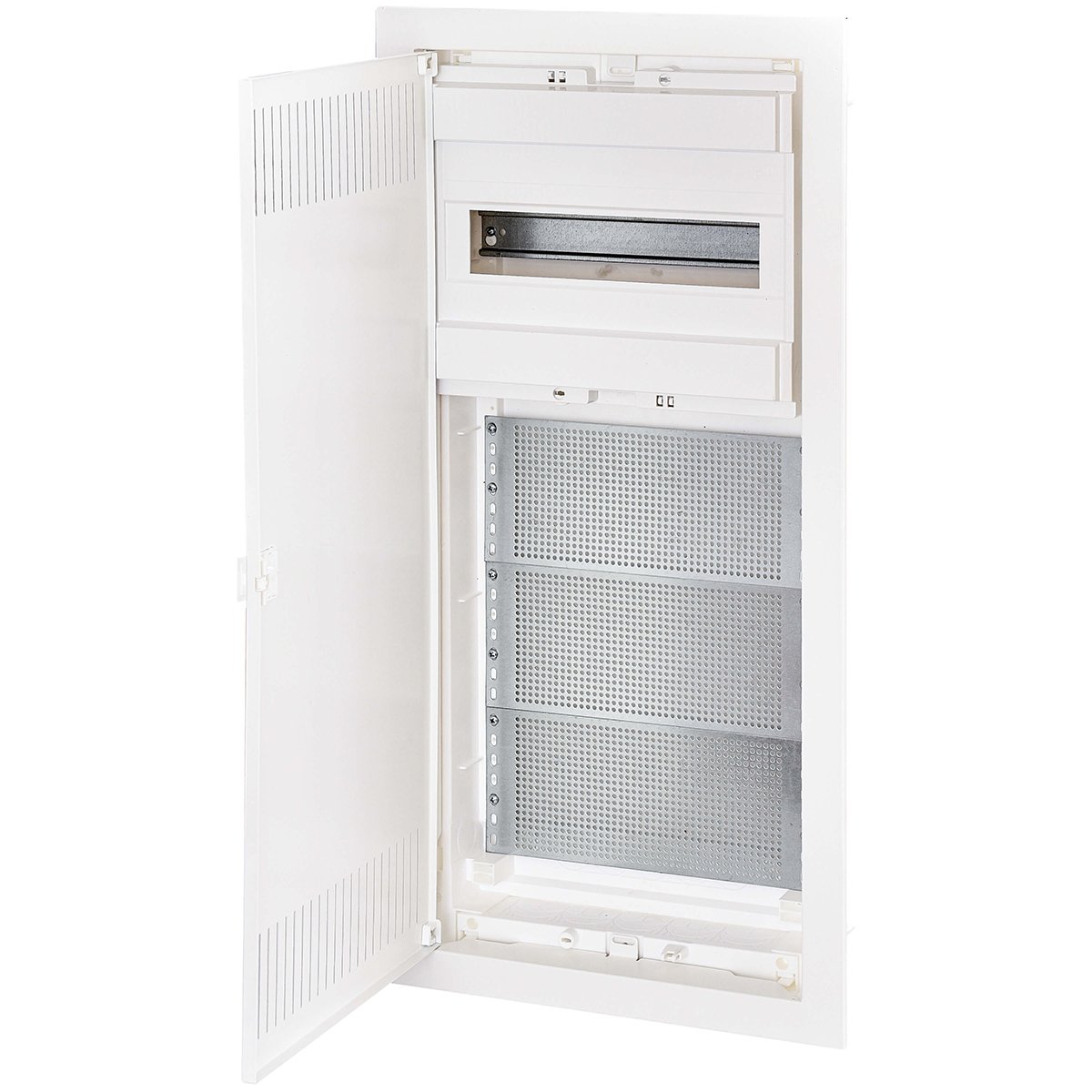 Металлопластиковый распределительный щит ECG 42 COMBO3/1-I для встроенного монтажа применяется в жилом и промышленном строительстве для совместного монтажа защитных, сигнальных и распределительных устройств модульного исполнения и телекоммуникационного оборудования (модемы, маршрутизаторы, телевизионные разветвители).