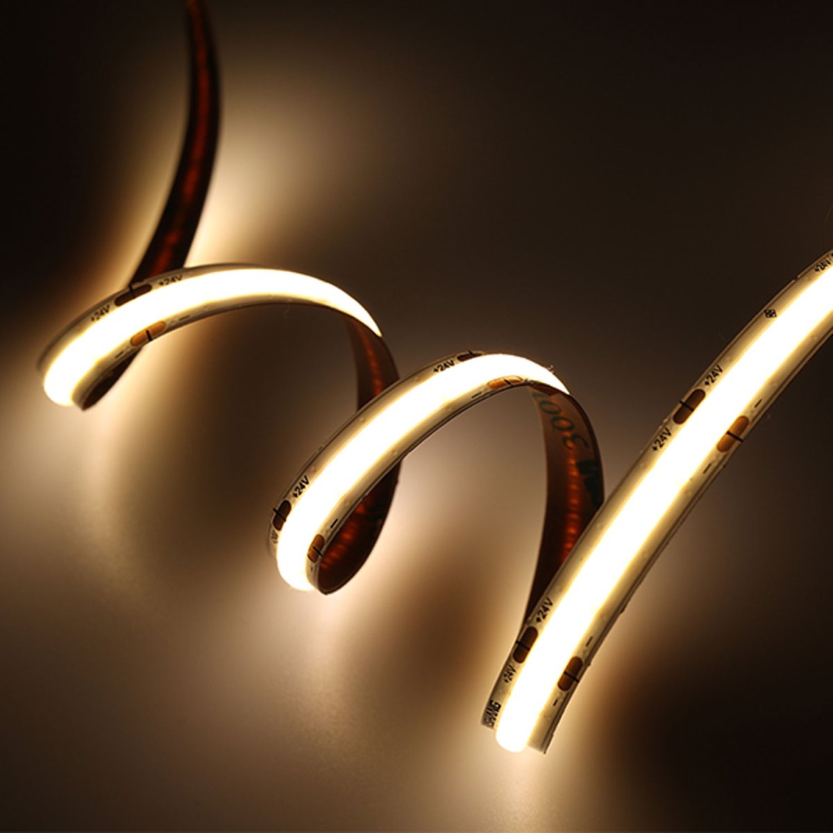 - Ровное свечение: Благодаря технологии COB, лента создаёт мягкое, сплошное свечение без точечных бликов, что идеально подходит для эстетичного освещения.
