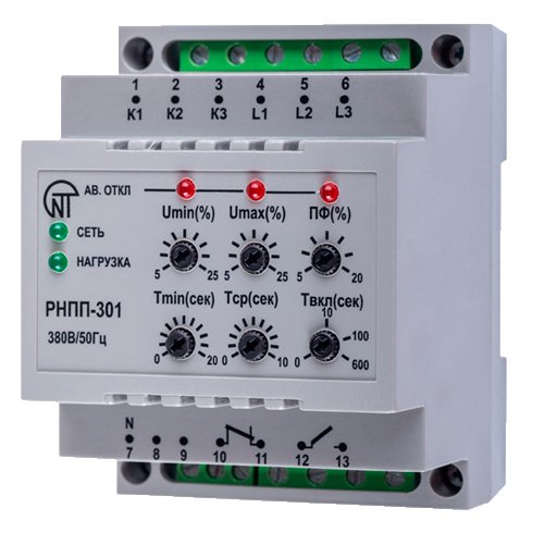 Трёхфазное реле напряжения и контроля фаз РНПП-301 Novatek — это устройство, предназначенное для защиты электрических систем от перепадов напряжения и неправильной работы фаз. Оно используется для обеспечения стабильной работы оборудования, предотвращая повреждения из-за обрыва или неправильного чередования фаз.