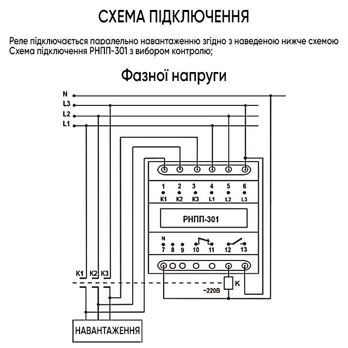 Реле напряжения, перекоса и последовательности фаз предназначено для комплексной защиты электрических цепей. Устройство контролирует допустимые значения фазного и линейного напряжения, чередование фаз, симметрию и слипание фаз, а также состояние силовых контактов магнитного пускателя. В случае отклонений от заданных параметров реле отключает нагрузку и автоматически восстанавливает питание после нормализации напряжения.