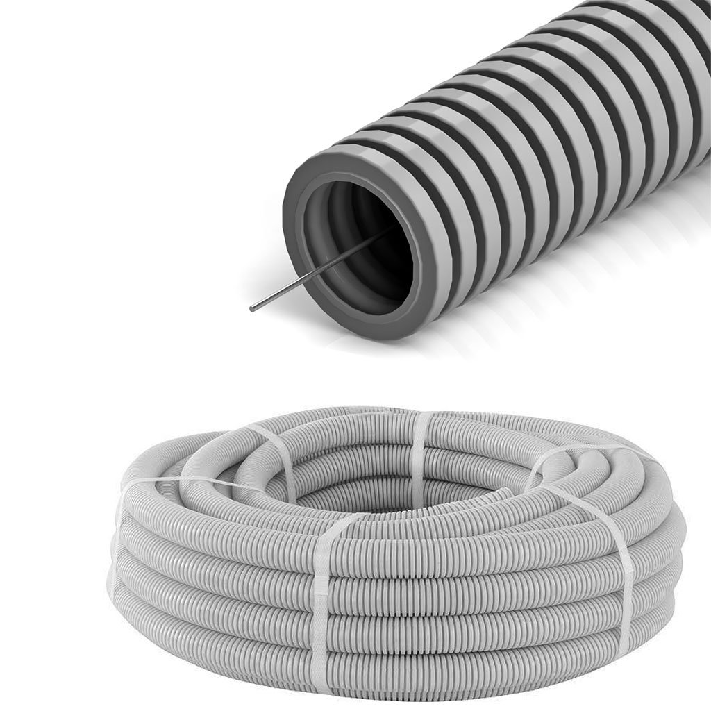 Труба гофрированная ДКС ∅20 мм, усиленная с протяжкой, цвет серый (91520)