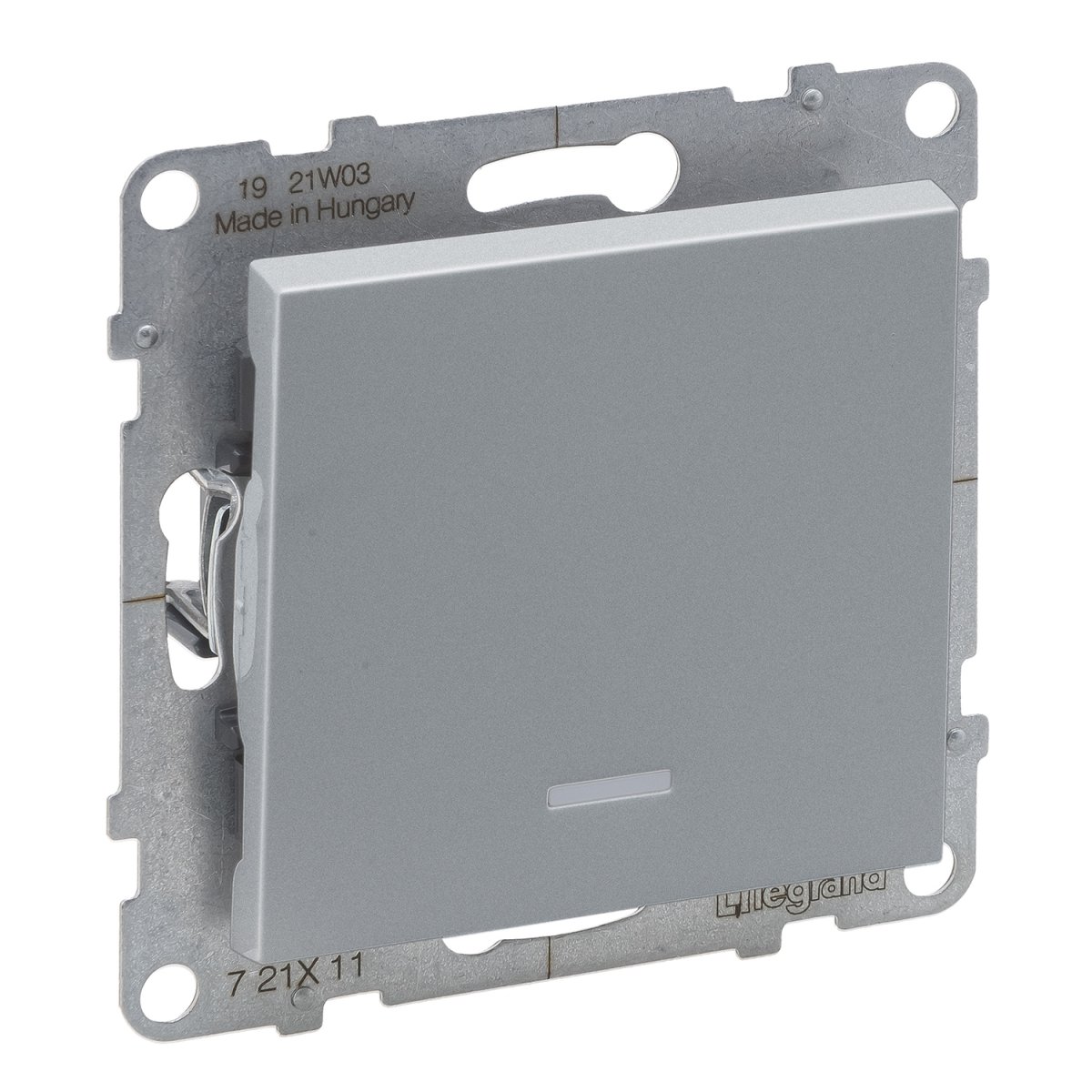 Выключатель 1-кл с подсв. (пружин.клеммы) 10А/250V Legrand Suno 721311 алюминий