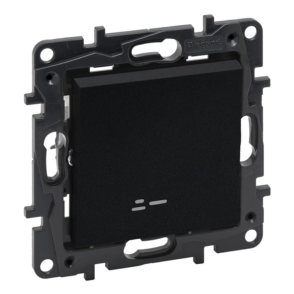 Выключатель 1-кл с подсветкой 10А, автоматические клеммы, Legrand Niloe Step 863511, черный