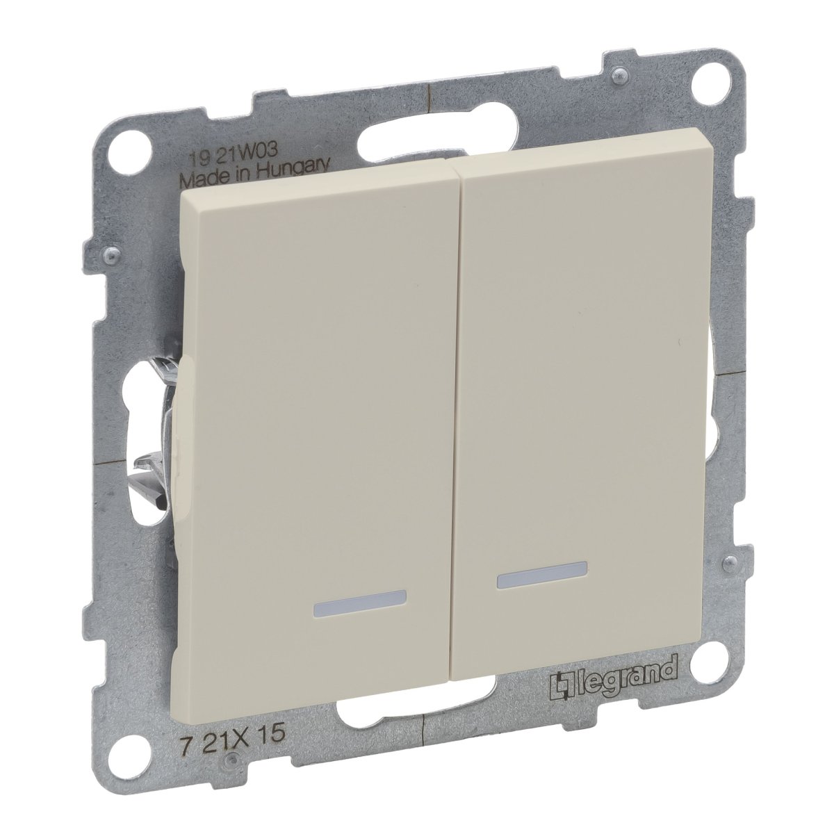 Выключатель 2-кл с подсв. (пружин.клеммы) 10А/250V Legrand Suno 721215 слоновая кость