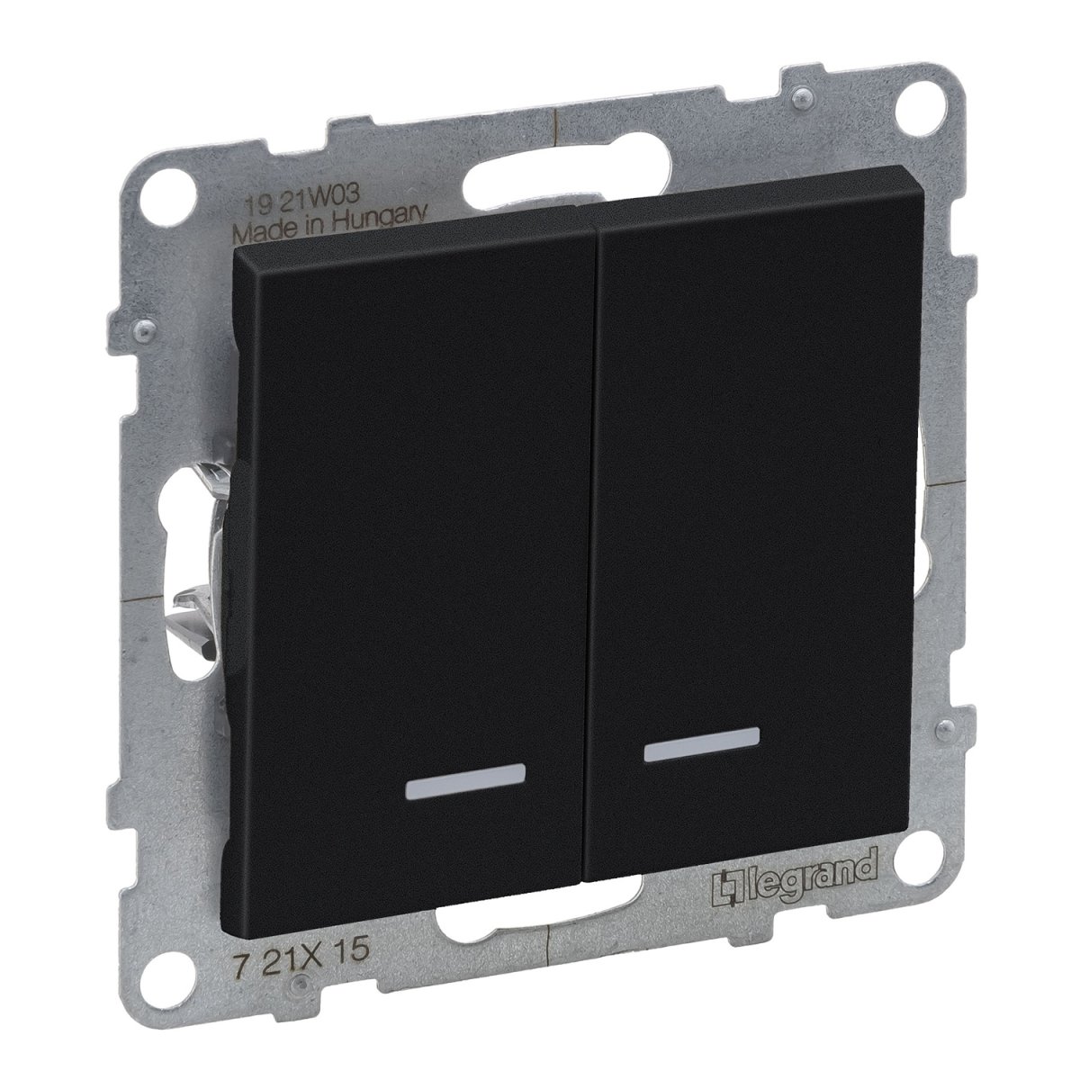 Выключатель 2-кл с подсветкой Legrand Suno 721415 черный