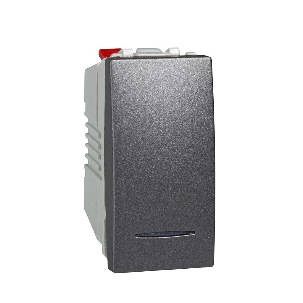 Выключатель кнопочный 1-кл, 1-м. c подсв. Unica графит Schneider Electric MGU3.106.12N