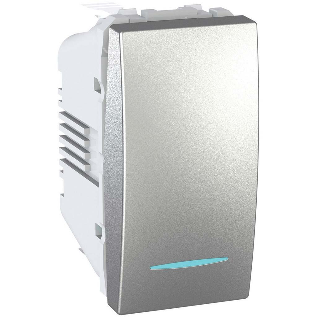Выключатель кнопочный 1-кл, 1-м. c подсв. Unica алюминий Schneider Electric MGU3.106.30N