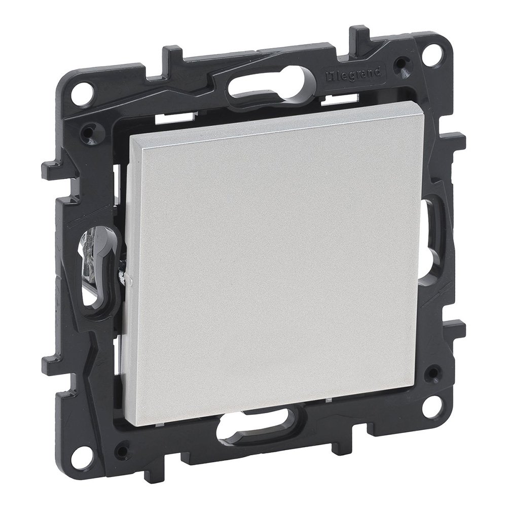 Выключатель кнопочный 1-кл 6А, автоматические клеммы, Legrand Niloe Step 863309, алюминий