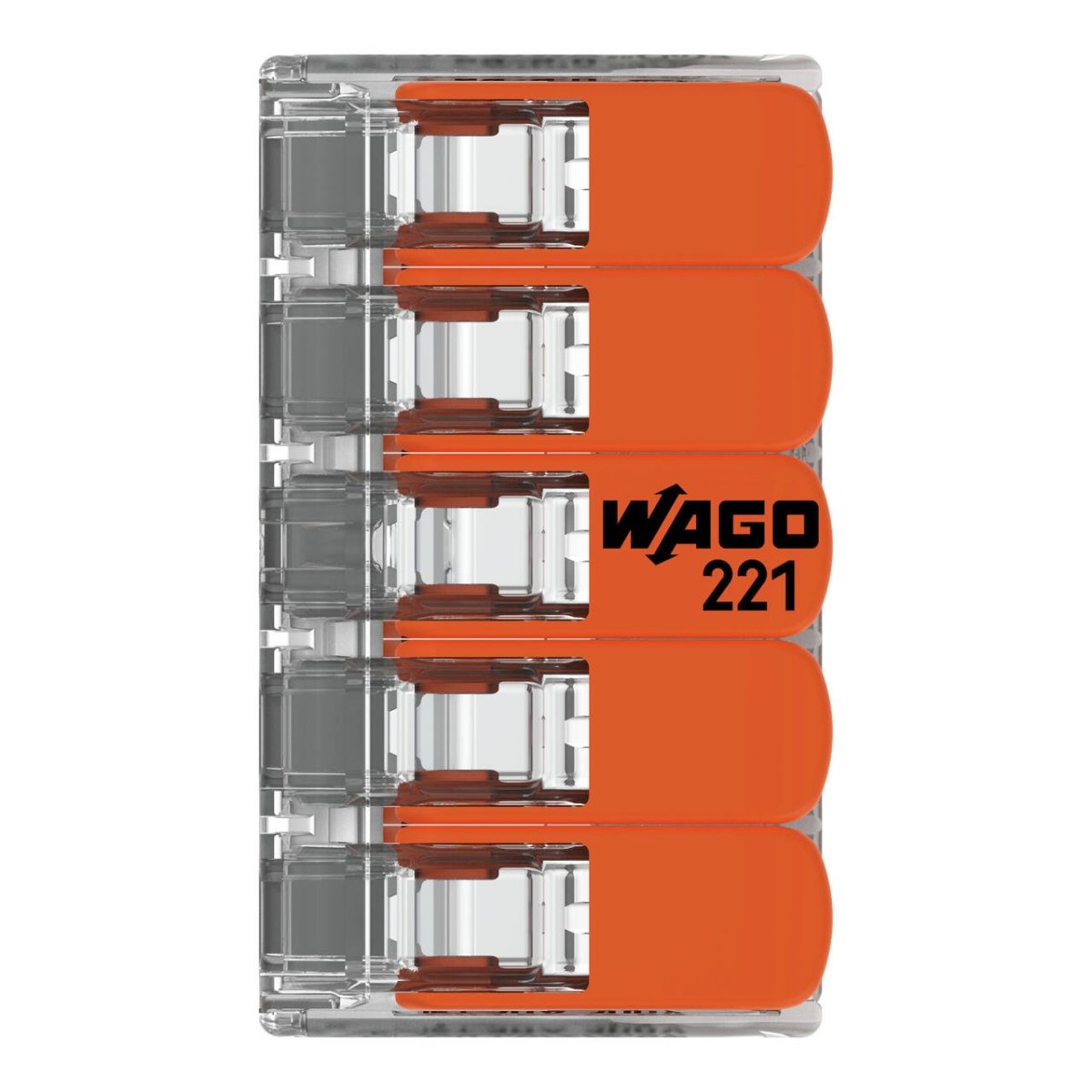Универсальная клеммная колодка Wago серии 221 для быстрого соединения медных проводников.