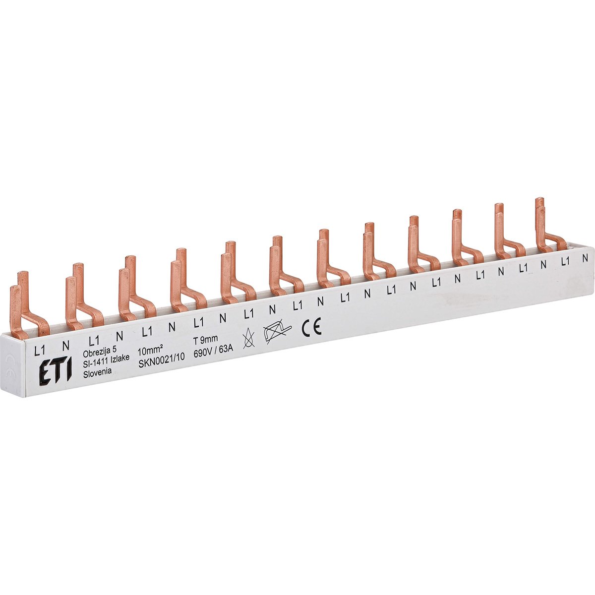 Шина живлення IZ-SKN0021/10 (10мм2, 1P+N, 0.22м, Pin, 12 мод.) ETI 2921150