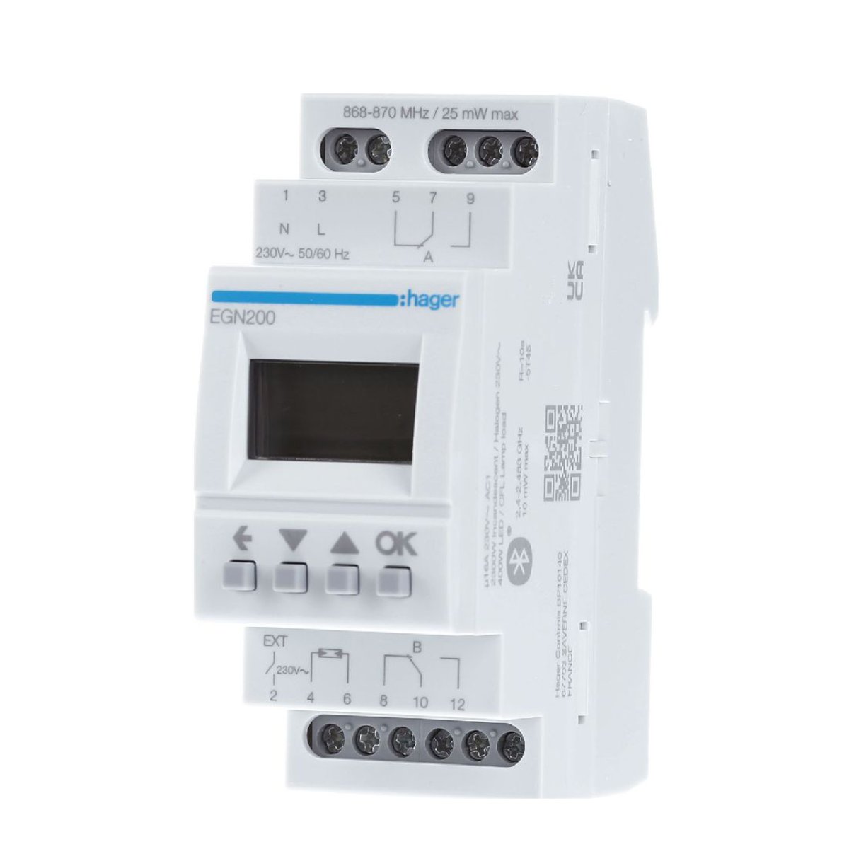Таймер цифровий мултіфункціональний, 2-канали + Bluetooth, запас ходу 10 років Hager EGN200