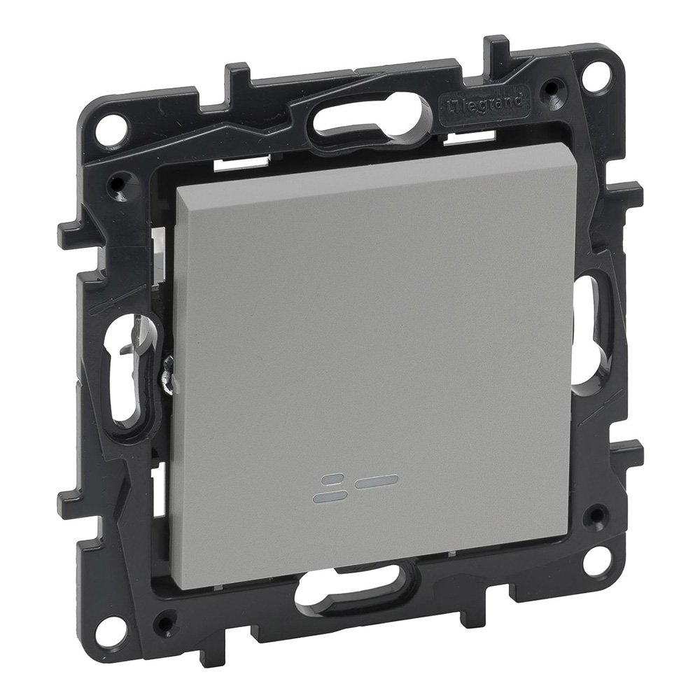 Вимикач 1-кл з підсвічуванням 10А, автоматичні клеми, Legrand Niloe Step 863311, алюміній