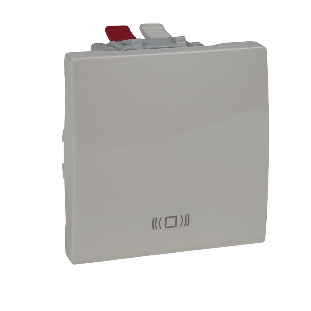 Кнопковий вимикач одноклавішний c нанесеним на клавішу позначенням - «дзвінок». Принцип роботи вимикача: підпружинена клавіша - однотактовий режим.– 2 модуля.