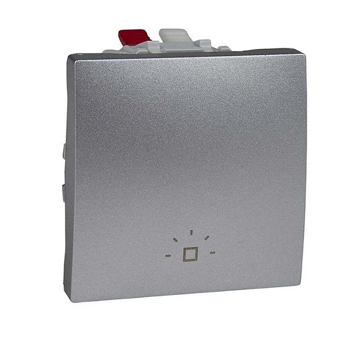 Кнопковий вимикач одноклавішний c нанесеним на клавішу позначенням - «світло». Принцип роботи вимикача: підпружинена клавіша - однотактовий режим.– 2 модуля.