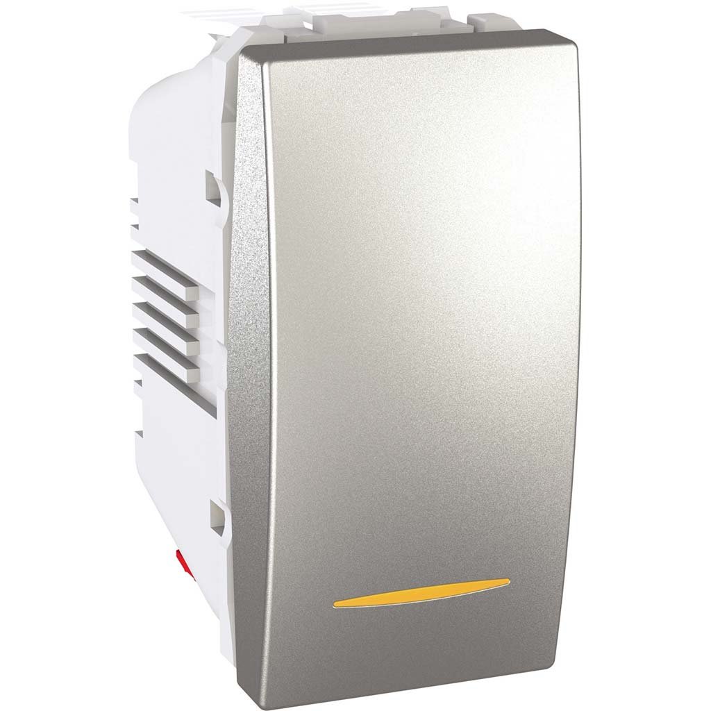 Вимикач прохідний 1-кл, 1-м. з індикацією Unica алюміній Schneider Electric MGU3.103.30S